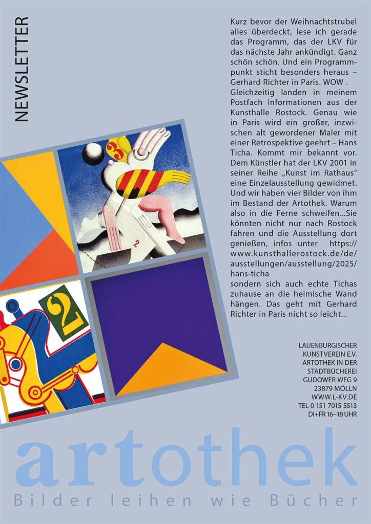 Gerhard Richter gegen Hans Ticha | Paris gegen Rostock oder vielleicht sogar beides? Lesen Sie selbst, was Regine Bonke zum Jahresende im Newsletter der Artothek schreibt.